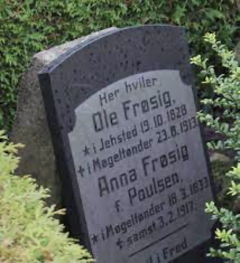 Ole Christian Jepsen Frøsig, der boede i et af Slotsgadens ældste huse, var veteran fra treårskrigen, hvor han deltog som hornblæser, og som sådan var han altid god for en rask diskussion om hvad der var ”størst”, sejren ved Isted, eller nederlaget ved Dybbøl. Frøsig var en vellidt mand i Møgeltønder, hvortil han, der var født i Vilslev den 19. oktober 1828, var kommet som ung mand i mellemkrigsårene. Han ernærede sig som arbejdsmand og har bl.a. arbejdet som medhjælper på Vestslesvigs Tidendes trykkeri hos redaktør Peter Larsen i huset overfor Slotskroen. Her har Frøsig ved håndkraft trukket den lille trykkeripresse. Avisen blev trykt på den solide håndpresse ved, at hvert enkelt blad blev fugtet og lagt ind over satsen og det var derefter Frøsigs arbejde at trække de fire avissider gennem maskinen og det kunne ofte blive sent, før de private avisbude blev færdige med aftenombæringen. Ole Frøsig fik en ugeløn på 2 Thaler, 7 Grosschen og 6 Pfenning. Ole Frøsig døde af en hjerneblødning den 23. august 1913, og hans ægtefælle den 3. februar 1917. Året før sin død kunne han dog fejre guldbryllup med sin hustru Ane Frøsig, født Paulsen, med hvem han blev gift den 4. marts 1862 i Møgeltønder. Ole og Ane Frøsigs gravminde finder vi ved siden af sin arbejdsgiver redaktør Peter Larsens gravminde i kirkegårdens nordøstlige afsnit. Der findes mange billeder af Ole Frøsig, da han var et af godsinspektør H.C. Davidsens yndlingsmotiver.