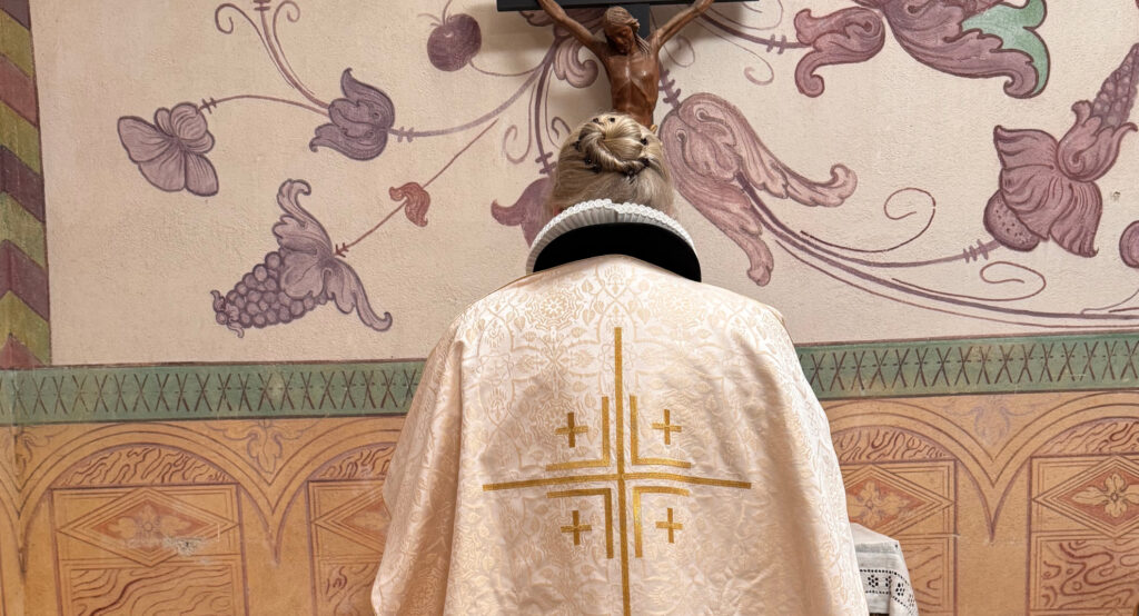 Møgeltønders nye lilla messehagel blev taget i brug 1. søndag i advent 2025. Den er lavet af lilla fløjl. På forsiden er der broderet en tornekrone, for at minde os om at Kristus er død og opstanden for os. På ryggen er der et stort gyldent kors, med naglerne fra korsfæstelsen mellem hver af korsets arme.
